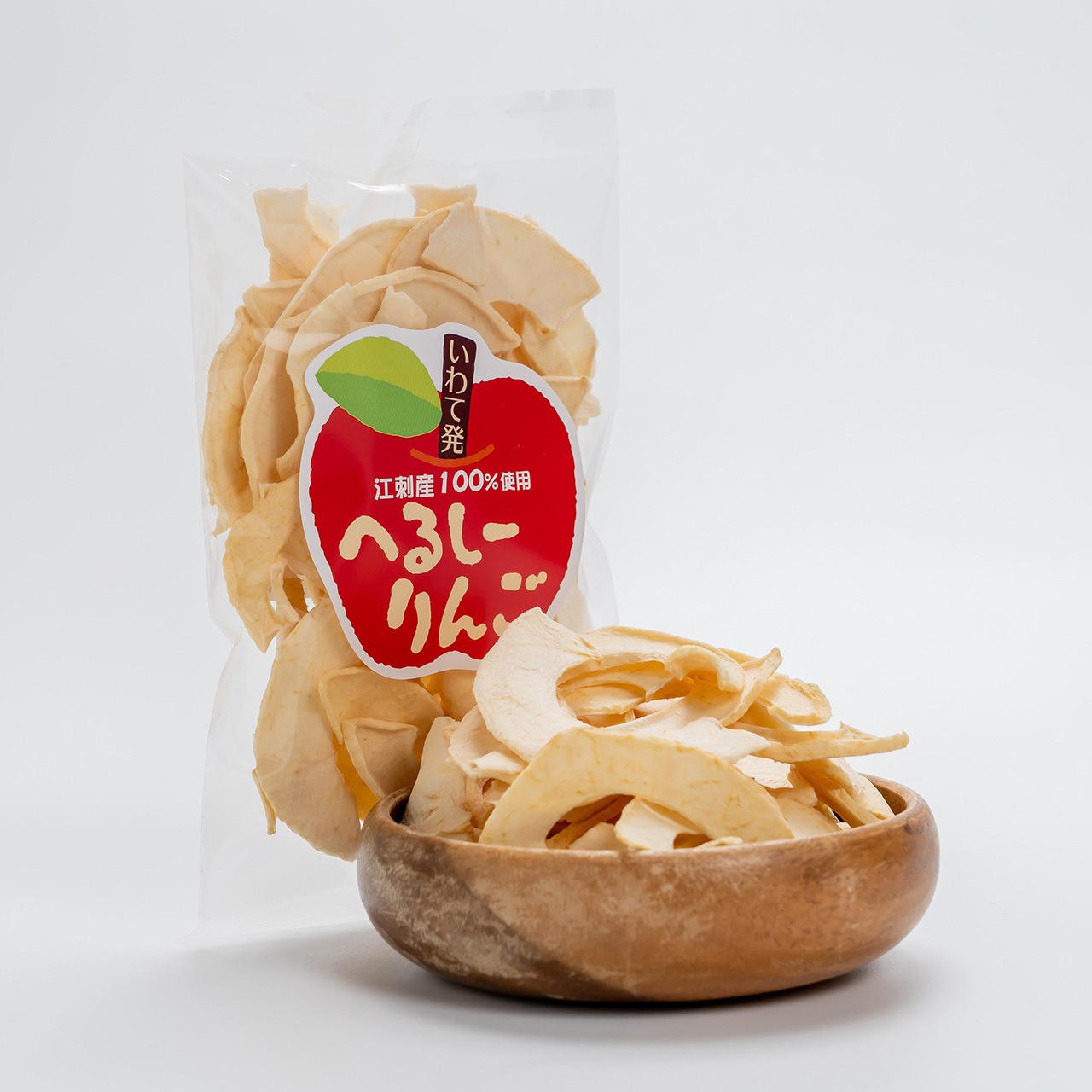 このへるし~りんごは、特選の江刺りんごを使用し、薄くスライスした贅沢なスナックです。自然な甘さとサクサクの食感が、まさにおやつやおつまみにぴったりの一品です!