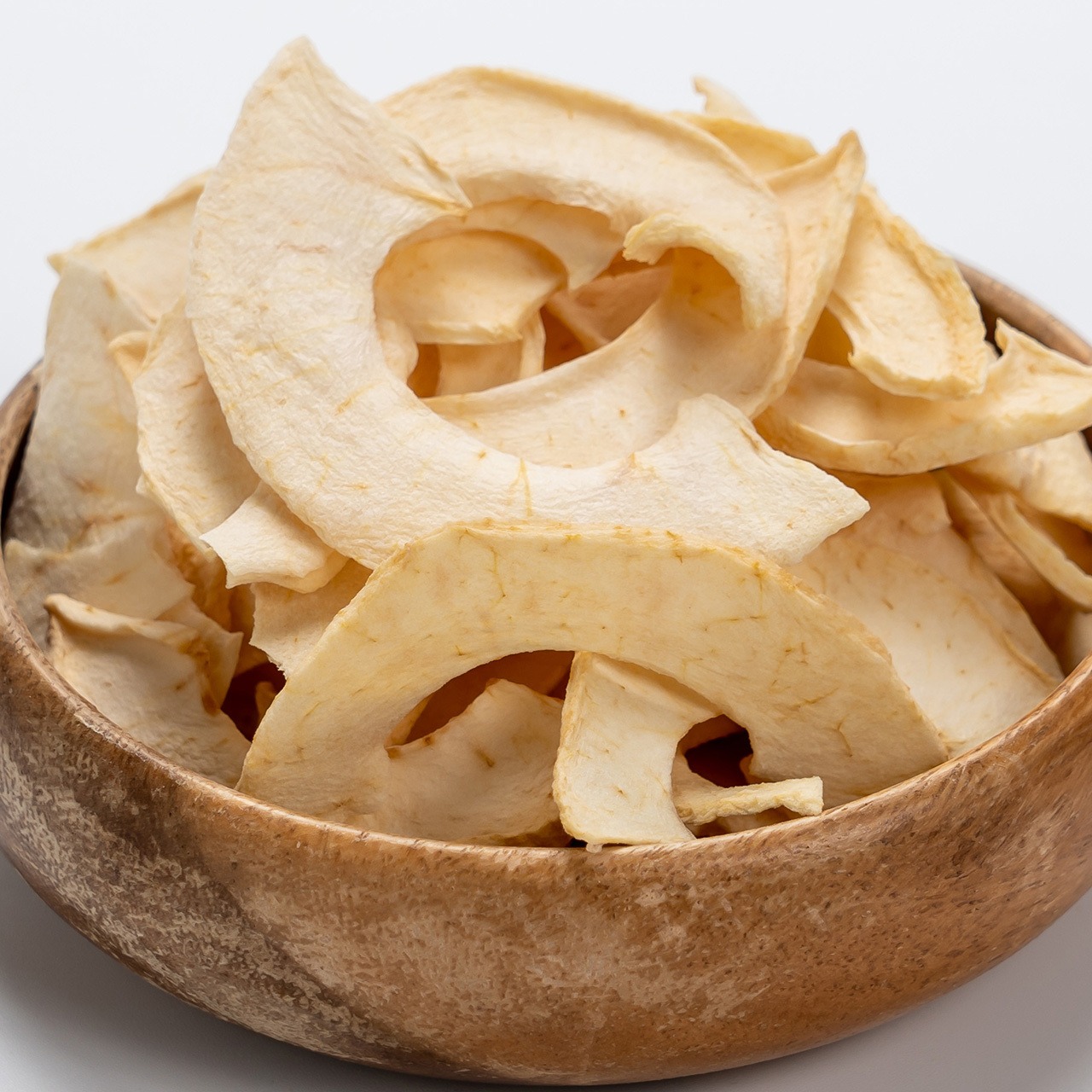 新鮮な江刺りんごをそのまま薄切りにし、風味を最大限に引き出しました。保存料や添加物は一切使用せず、自然な味わいを楽しむことができます。軽い食感が特徴で、手軽にエネルギー補給ができるおやつとして、忙しい日常にも最適です。